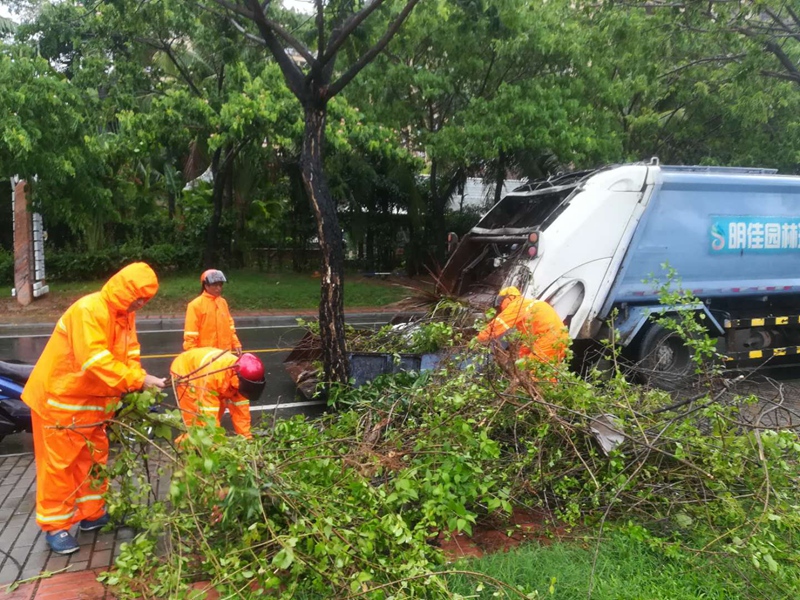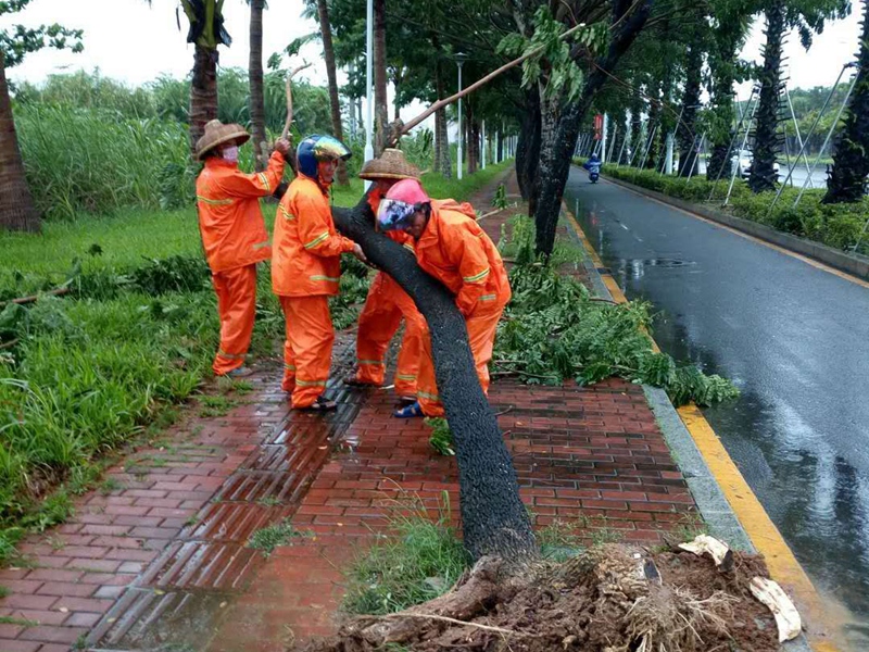 今年第9號臺風“山神”的中心于今天凌晨4點50分前后,在海南萬寧市萬城鎮(zhèn)沿海登陸。受其影響,今天三亞、陵水有大到暴雨,將三亞、陵水街頭不少樹木刮倒,到處是殘枝敗葉,一片狼藉。臺風中,為了確保市容環(huán)境的整潔、干凈,集團公司安排環(huán)衛(wèi)工人全員上崗,加緊清理街道路面,使城市迅速恢復潔凈。