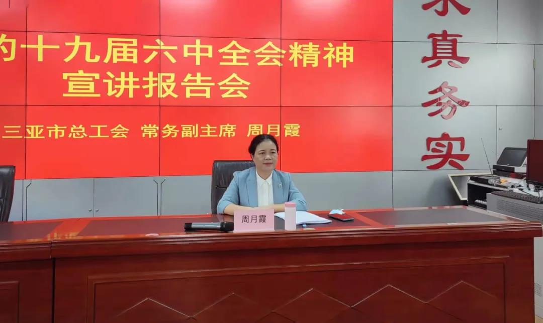 宣講會(huì)上,周月霞從黨的十九屆六中全會(huì)的重大意義、“兩個(gè)”確立、以“四個(gè)”歷史時(shí)期、“三次”飛躍、“十個(gè)”堅(jiān)持等方面,結(jié)合三亞市第八次黨代會(huì)精神和工會(huì)工作實(shí)際,對(duì)全會(huì)精神作了深入淺出的闡釋和全面系統(tǒng)的解讀。她表示,希望大家能夠通過(guò)學(xué)習(xí),更好地從黨的百年奮斗中看清楚過(guò)去我們?yōu)槭裁茨軌虺晒?、弄明白未?lái)我們?cè)鯓硬拍芾^續(xù)成功,激發(fā)奮進(jìn)新時(shí)代、邁好新征程、建功自貿(mào)港的斗志和豪情。