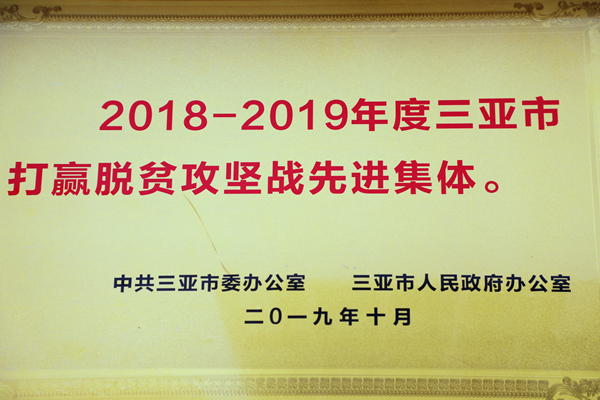 明佳集團(tuán)榮獲“2018-2019年度三亞打贏脫貧攻堅(jiān)先進(jìn)集體”稱(chēng)號(hào)